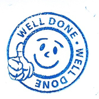 Na zakończenie wszystkie dzieci otrzymały pieczątkę z Well done (Dobrze) z uśmiechniętą buźką, ale stawiając je zwracałam uwagę, co wyszło, a co nie. Na przykład, wskazując palcem na udane próby, mówiłam This is nice. This looks great., a kręcąc głową i wskazując na problematyczne fragmenty rysunków, mówiłam Something is not quite right about this picture. You need to be careful here and it will be fine. OK?. Zadziwiające, że dzieci dokładnie wiedzą, gdzie popełniły błędy. Wiedzą też, że czasami im się po prostu nie chciało.