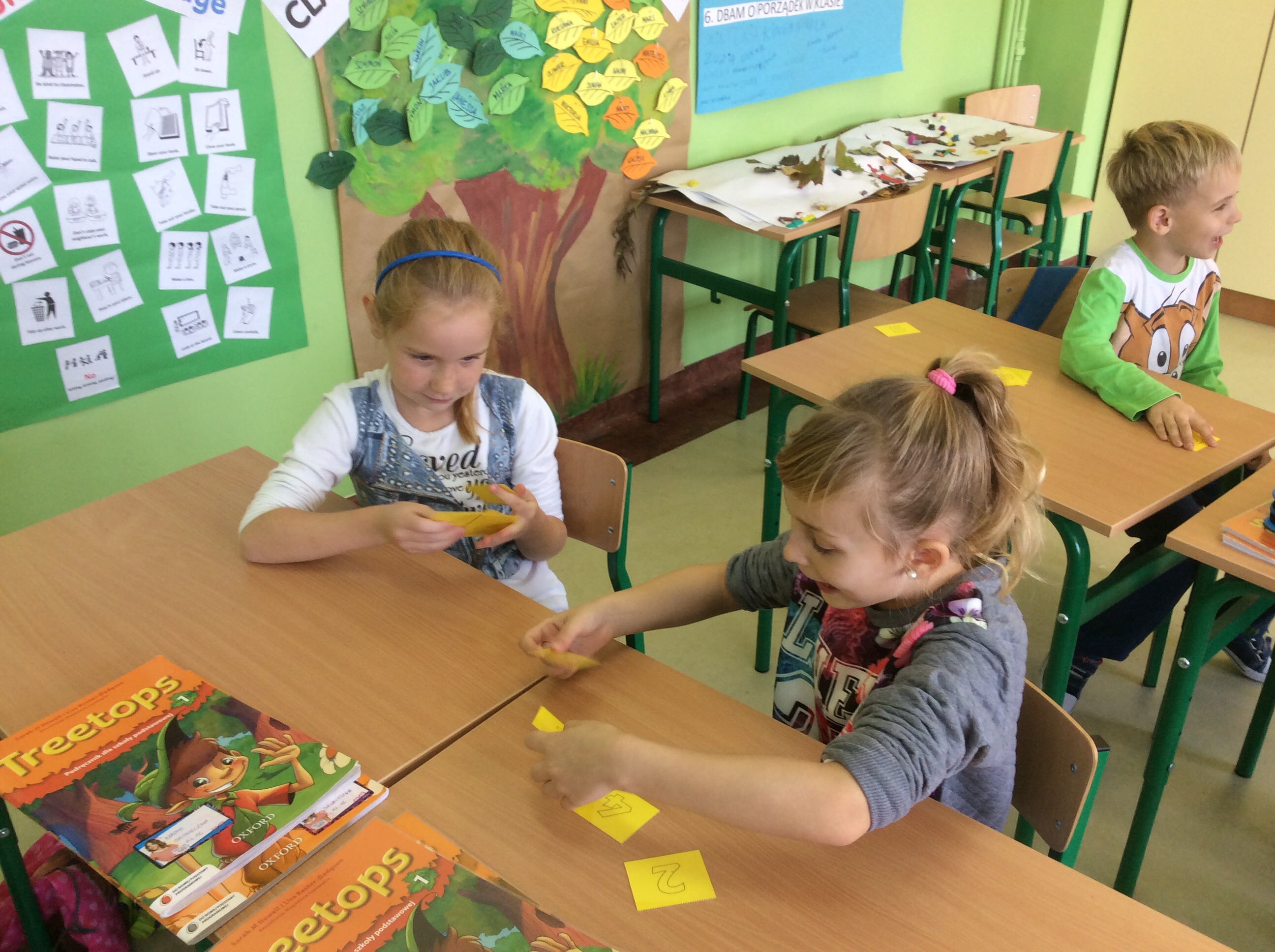 Na kolejnym teście pewnie znowu będzie „posłuchaj i zakreśl”, „posłuchaj i połącz”, więc tego typu ćwiczenia (listen&do) bardzo się przydają. Choć prawda jest taka, że niektóre dzieci powtarzają to, co robią inne – trudno powiedzieć czy rzeczywiście „coś z tego wszystkiego kumają”, więc jutro zindywidualizujemy to ćwiczenie.