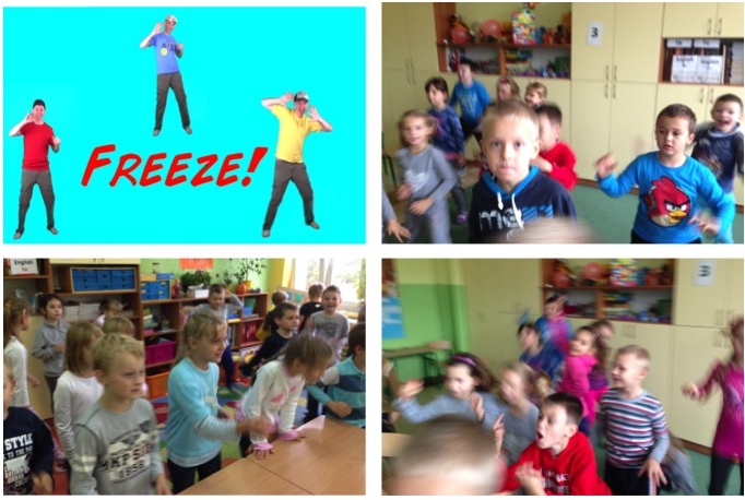 Zaczynamy od rozgrzewki: pokazywanie umieszczonych na ścianach, w różnych kątach sali, cyferek. Wymachujemy rękoma jak małe wiatraczki. Potem piosenka The Number Song w rytmie jive’a. Płyta jest dołączona do zeszytu ćwiczeń, można posłuchać i potańczyć. Ja często zmieniam refren, zamiast: