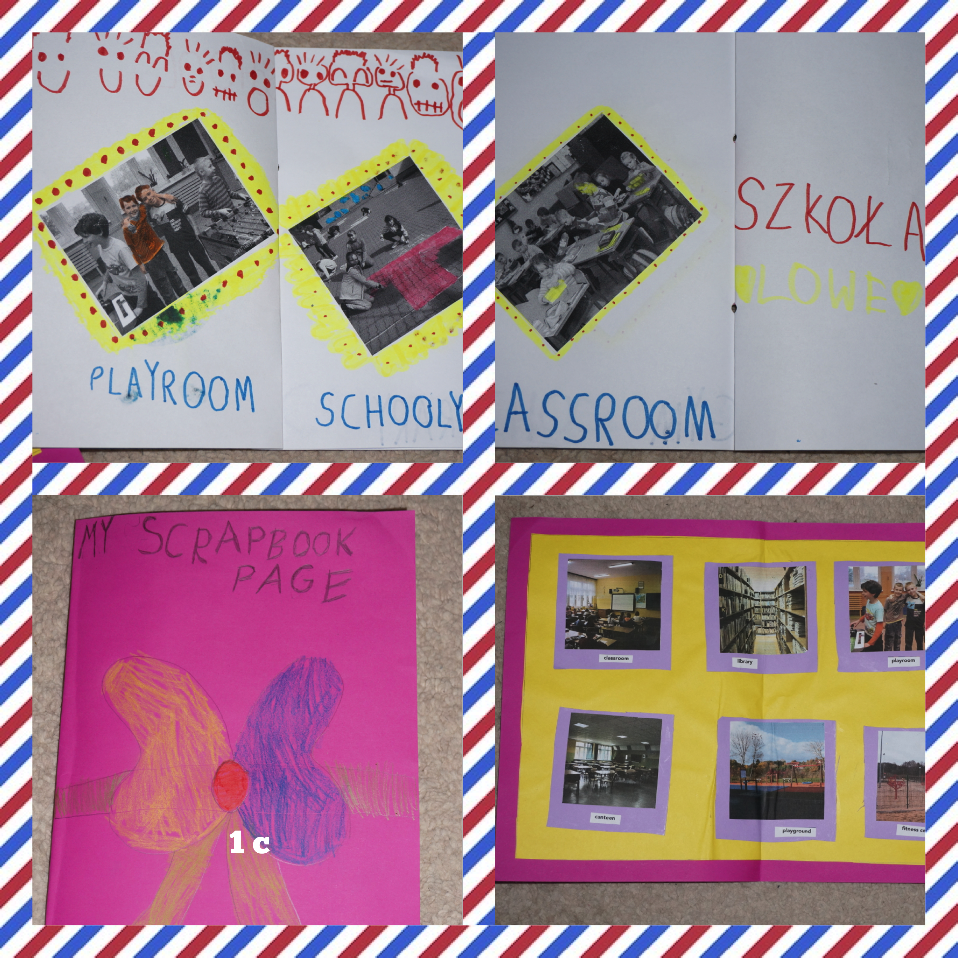 Dzisiaj Maja z 1b dostarczyła pracę „rzutem na taśmę”. Nagroda była, ale niech dzieci już nie dostarczają prac – kto nie brał udziału w dodatkowym zadaniu domowym, don’t worry (niech się nie martwi)! Już niedługo będzie kolejna okazja. Jak widzicie, niektórzy już założyli książkę na swoje scrapbook’owe karteczki.