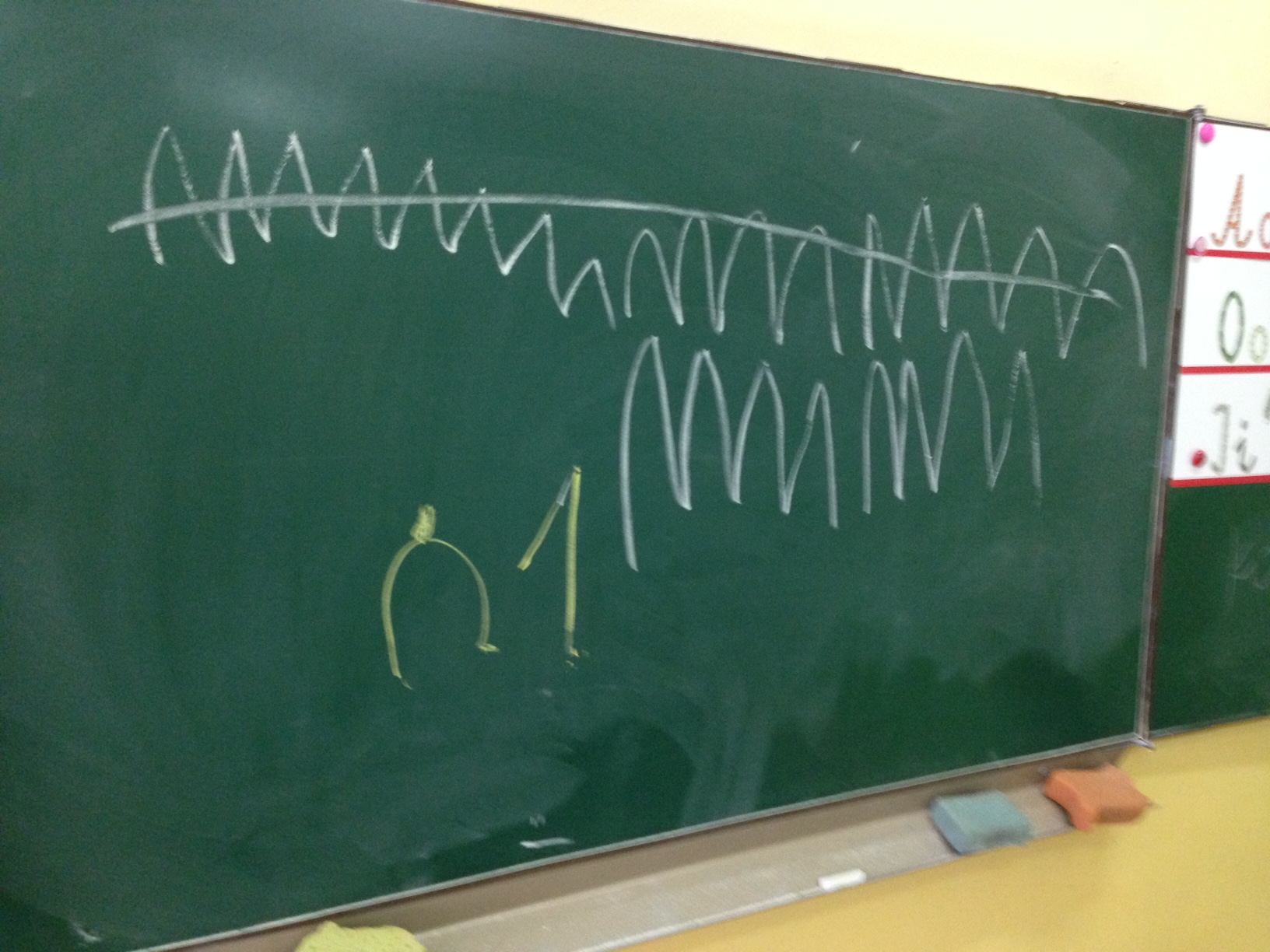 PS. Dzieci najwyraźniej odreagowują stres i napięcie z Pasowania, bo dzisiaj był straszny harmider, a zachowanie co niektórych… hmmm, jak to ująć? Niestety w takich sytuacjach nawet najbardziej atrakcyjne środki dydaktyczne pomagają tylko trochę, kto nie chce, niestety i tak nic nie będzie robił. A właściwie, będzie, tylko niekoniecznie to, co ja bym chciała. Będzie np. 45 minut bazgrał po tablicy, a poproszony żeby bazgrał z sensem, na przykład cyferki, które dziś ćwiczyliśmy, narysuje to co poniżej. Trudno. Nie zawsze jest lekko. Nie, poprawka: lekko to w edukacji nie ma nigdy.