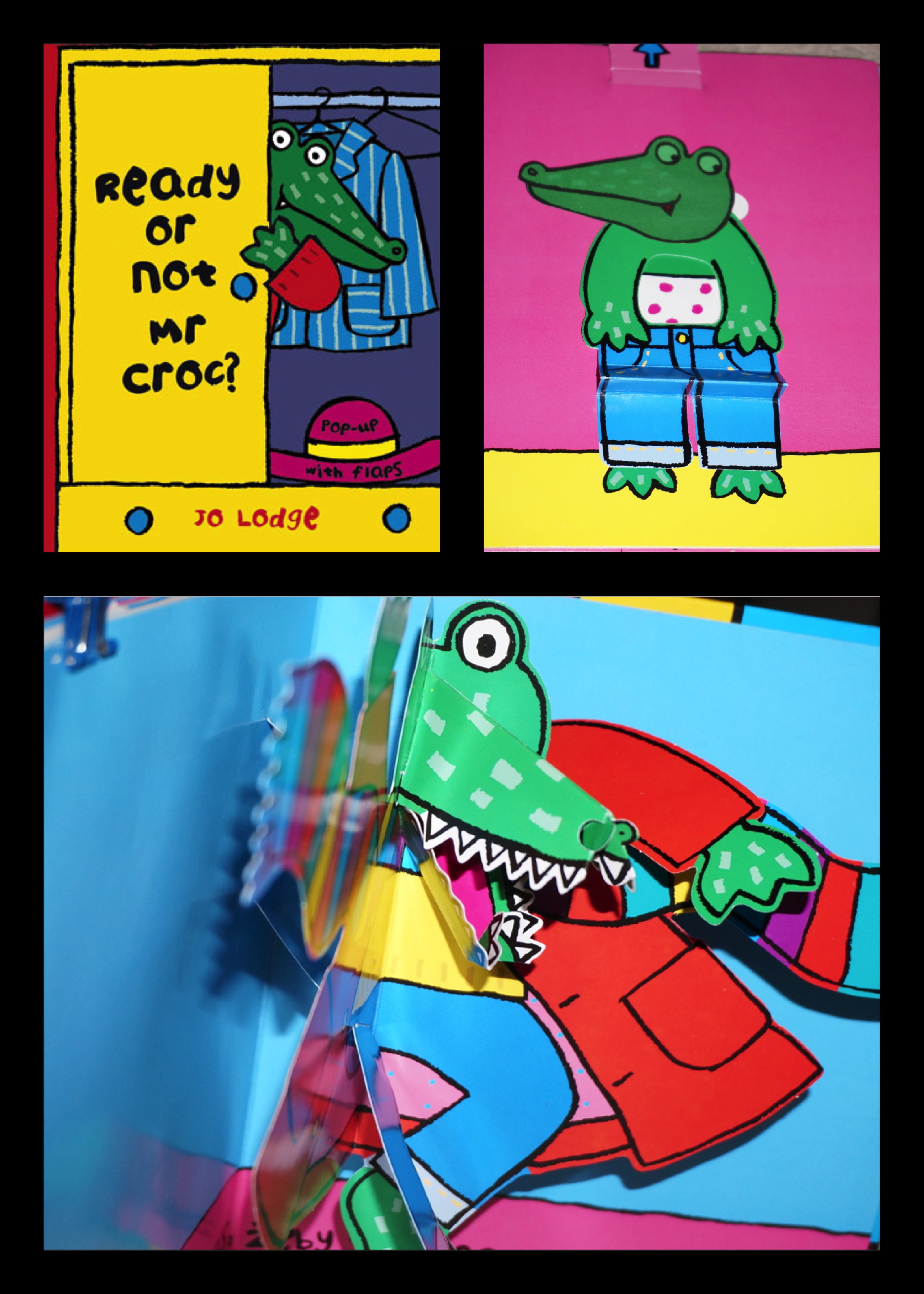 Wyrazów było sporo więc nie tylko oglądaliśmy i nazywaliśmy elementy na kartach obrazkowych, ale także wskazywaliśmy na ubrania, które mieliśmy na sobie oraz udawaliśmy, że wkładamy dany element ubrania (ten sam trik zastosowaliśmy śpiewając piosenkę Clothes Song). W piosence pojawia sie fraza czasownikowa put on (wkładać, nakładać na siebie), którą wprowadziłam przy pomocy książeczki pt. Ready or not, Mr Croc? Ten fragment lekcji po raz kolejny potwierdził moją teorię, że dzieci wprost uwielbiają jak się im czyta, czy to w języku ojczystym czy obcym, pod warunkiem, oczywiście, że historia jest zajmująca oraz, że z techniki storytelling (storyreading) nie próbujemy na siłę „wycisnąć” za dużo pedagogicznego soku (czytaj: efektów kształcenia). A zatem żadnego wprowadzania nowego słownictwa, żadnych ćwiczeń językowych. Ot, czysta przyjemność ze zrozumienia śmiesznej historyjki, oglądania ruchomych obrazków i obcowania z autentycznym językiem. W książeczkach Jo Lodge najfajniejszy jest moment dochodzenia do ostatniej strony, z której Pan Kłap (pod taką nazwą funkcjonuje w polskich tłumaczeniach) dosłownie wyskakuje (dzięki ilustracjom 3D) szczerząc zębiska Grrrr! Język książek nie wymaga tłumaczenia na język ojczysty, ponieważ opiera się często na powtarzaniu tej samej kluczowej frazy (Ready or not, Mr Croc? Not, yet. I’m putting on my (read coat/ yellow jumper etc.), która „tłumaczy się sama” poprzez ilustracje (podstawowe barwy, gruby kontur) oraz kontekst. I właśnie o to chodzi w technice nauczania storytelling/storyreading: o ekspozycję na naturalny, nieuproszczony, autentyczny język i zmuszenie dziecka do tego, by się „zanurzyło” (immersed) i ogarnęło o co w tej całej historyjce chodzi. Trochę to przypomina naukę pływania metodą sink or swim: wrzucona/y na głęboką wodę albo zaczniesz pływać albo utoniesz. Dlaczego takie „zanurzanie” jest tak bardzo ważne wyjaśnia m.in. Mateusz Grzesiak (popularny ostatnio personal coach, który, co ważne! deklaruje znajomość ośmiu języków obcych), w podlinkowanym jakiś czas temu przez panią dyrektor ZS28 fejsbukowym filmiku. (Tak na marginesie, 1c miała dziś mały „obsuw” czasowy na polskim, więc książeczkę przeczytamy jutro, na rozgrzewkę).