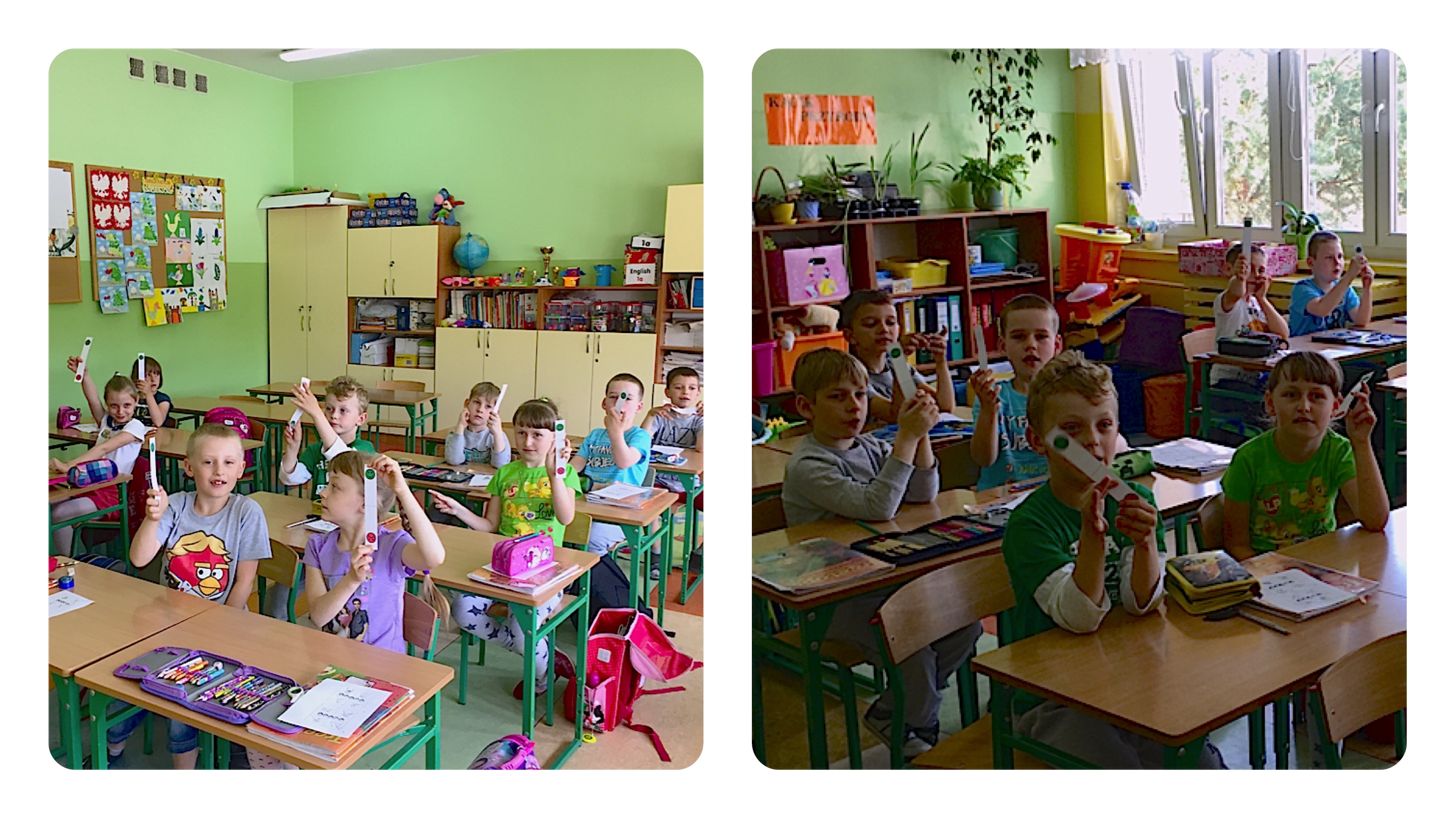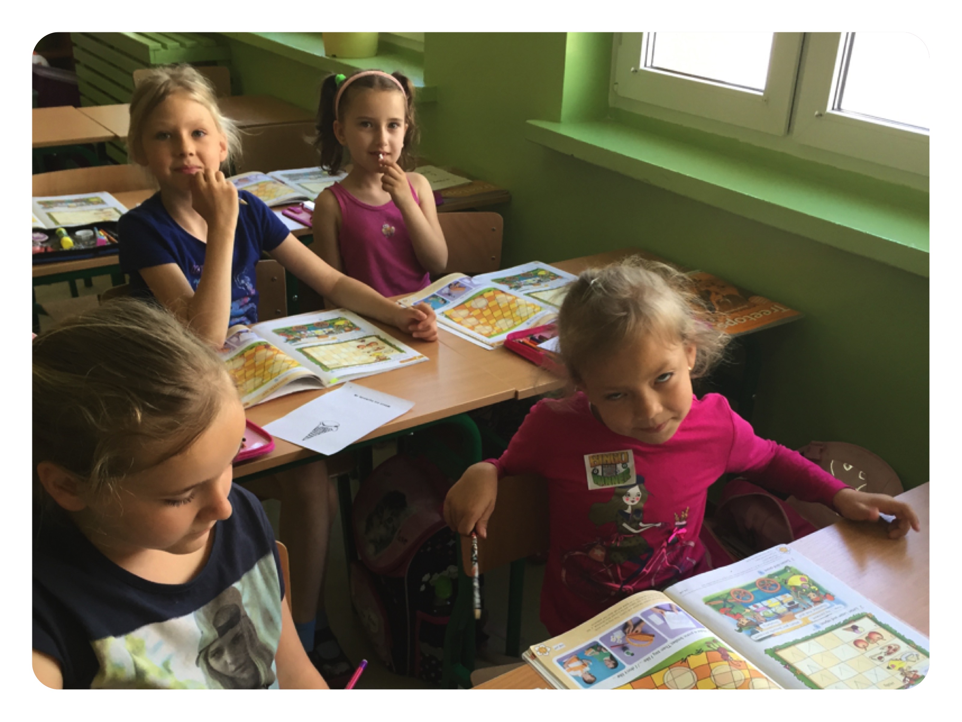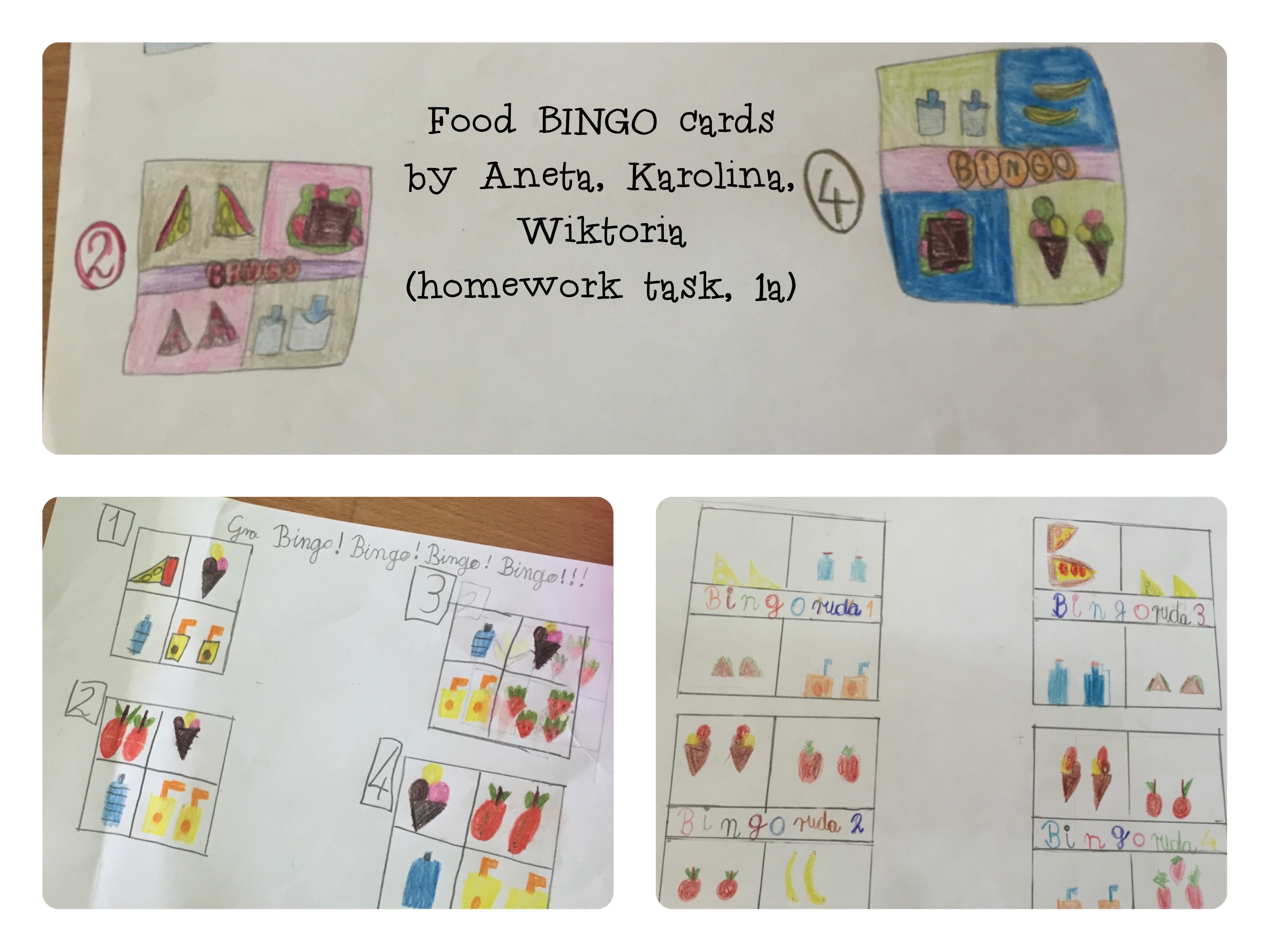 I jeszcze jedna obserwacja z dzisiejszego dnia. W każdej klasie mówię niby to samo; ważne rzeczy powtarzam dwu czy trzykrotnie; wyjaśniam i sprawdzam, czy dzieci zrozumiały i zapamiętały, a jednak potem się okazuje, że w trzech klasach tylko kilkoro dzieci pamietało o tym, że same chciały dziś rozegrać kolejną rundkę Bingo i, że same zadeklarowały się, że zrobią plansze do grania. Tydzień to jednak szmat czasu, zapał zdążył ostygnąć i po deklaracjach nie został nawet ślad. Wiedząc, że tak może się właśnie stać skserowałam zawczasu dla dzieci po dwie puste plansze na których mogły szybko narysować ołówkiem swoje obrazki, ale tym bardziej dziękuję tym nielicznym, które pamiętały, a w szczególności Anecie, Karolinie i Wiktorii. Bravo girls!
