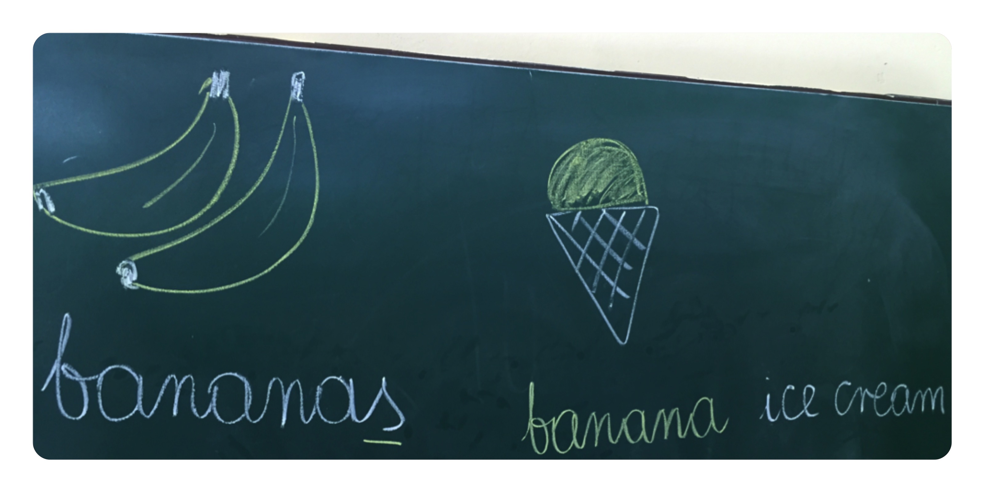 Wracając do lekcji, po zrobieniu ćwiczenia 1 z podręcznika (str. 60), poszliśmy do budki z lodami Holly i Bud’a i poznaliśmy słówko favourite (ulubiony) oraz kilka nowych smaków lodów. Do już znanych chocolate, banana, strawberry, dodaliśmy vanilla, peach (brzoskwiniowy), lemon (cytrynowy), cookie, pistachio. Ponieważ dzieci bananas, apples, oranges, strawberries poznały w liczbie mnogiej musiałam im wyjaśnić w prosty sposób jak można utworzyć „smak” (czyli w naszym, dorosłym języku, przymiotnik), np. bananowy, od znanych im słów.
