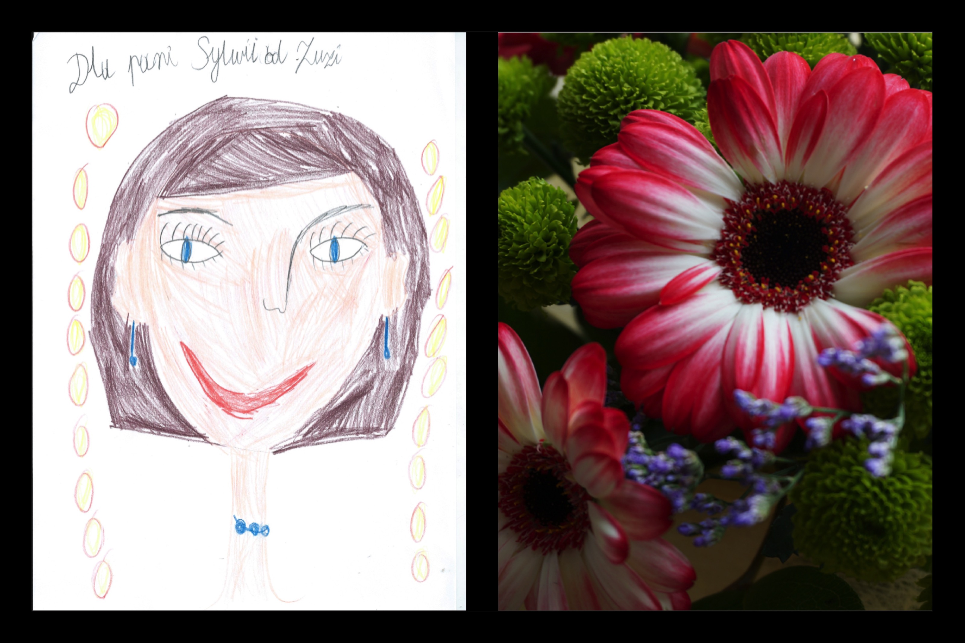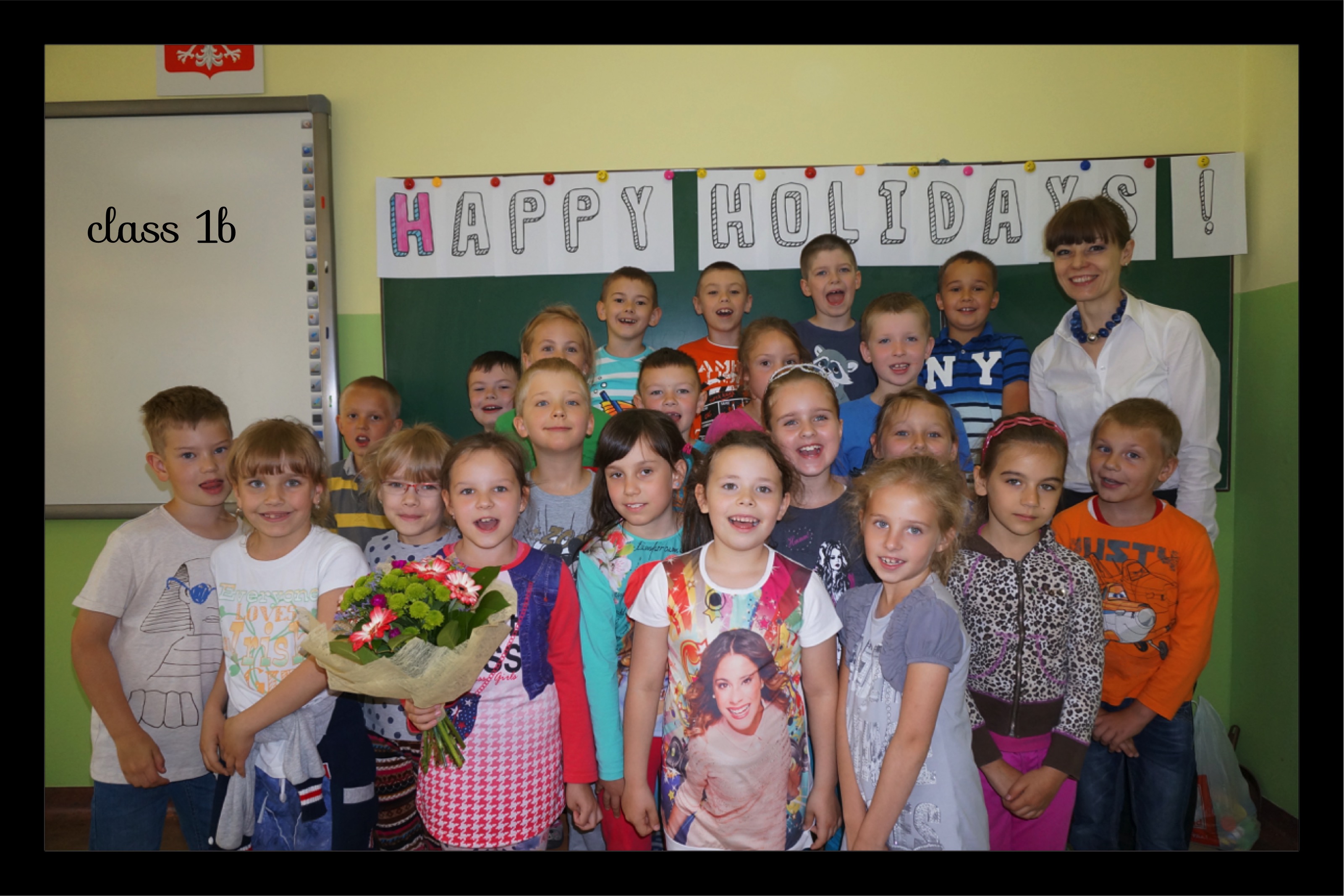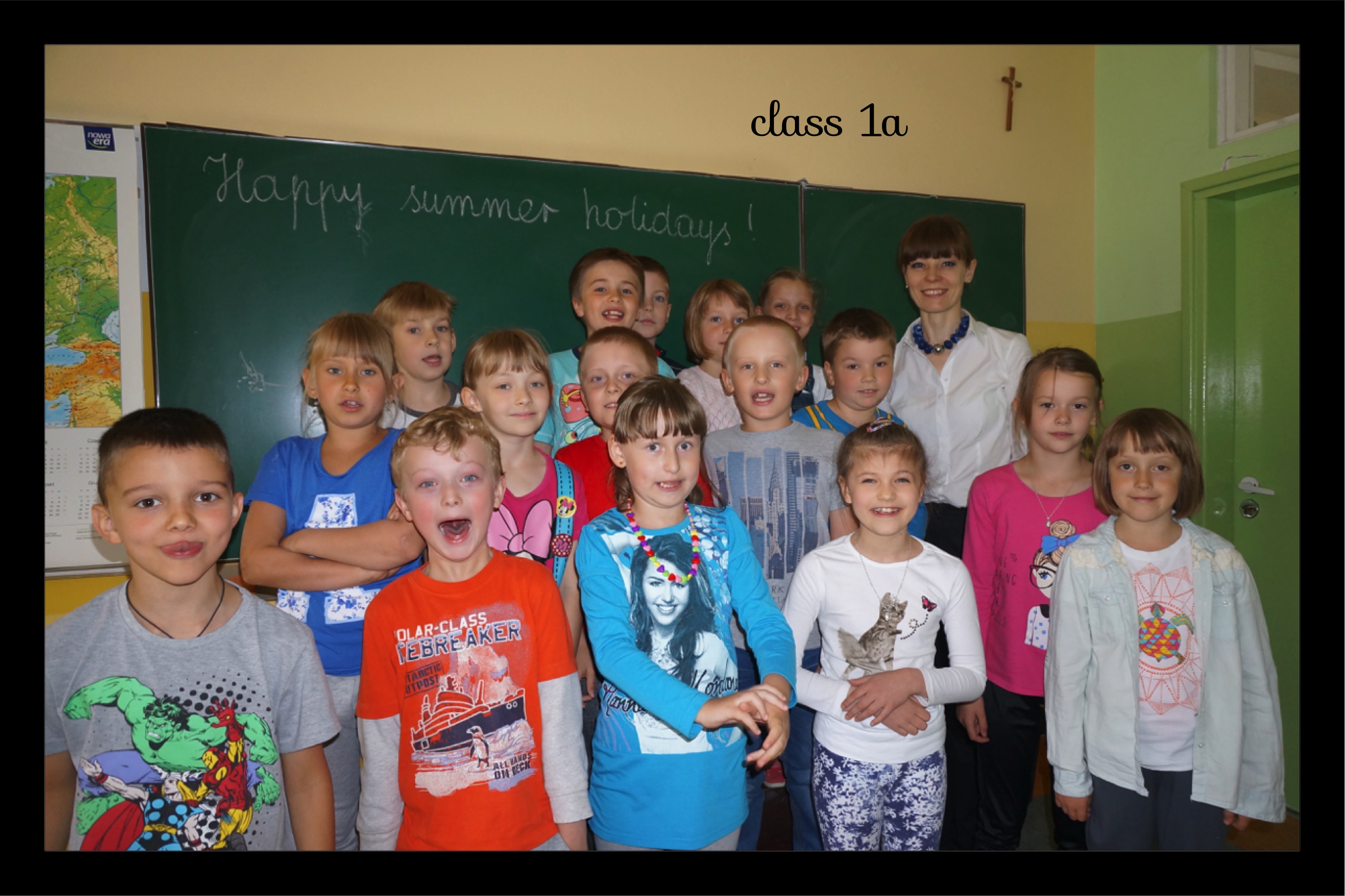 PS. 1b dziękuję za śliczne kwiatki, a Zuzi za laurkę. Jak widać na załączonym obrazku udało mi się z uśmiechem na ustach dotrwać do wakacji. Uff!