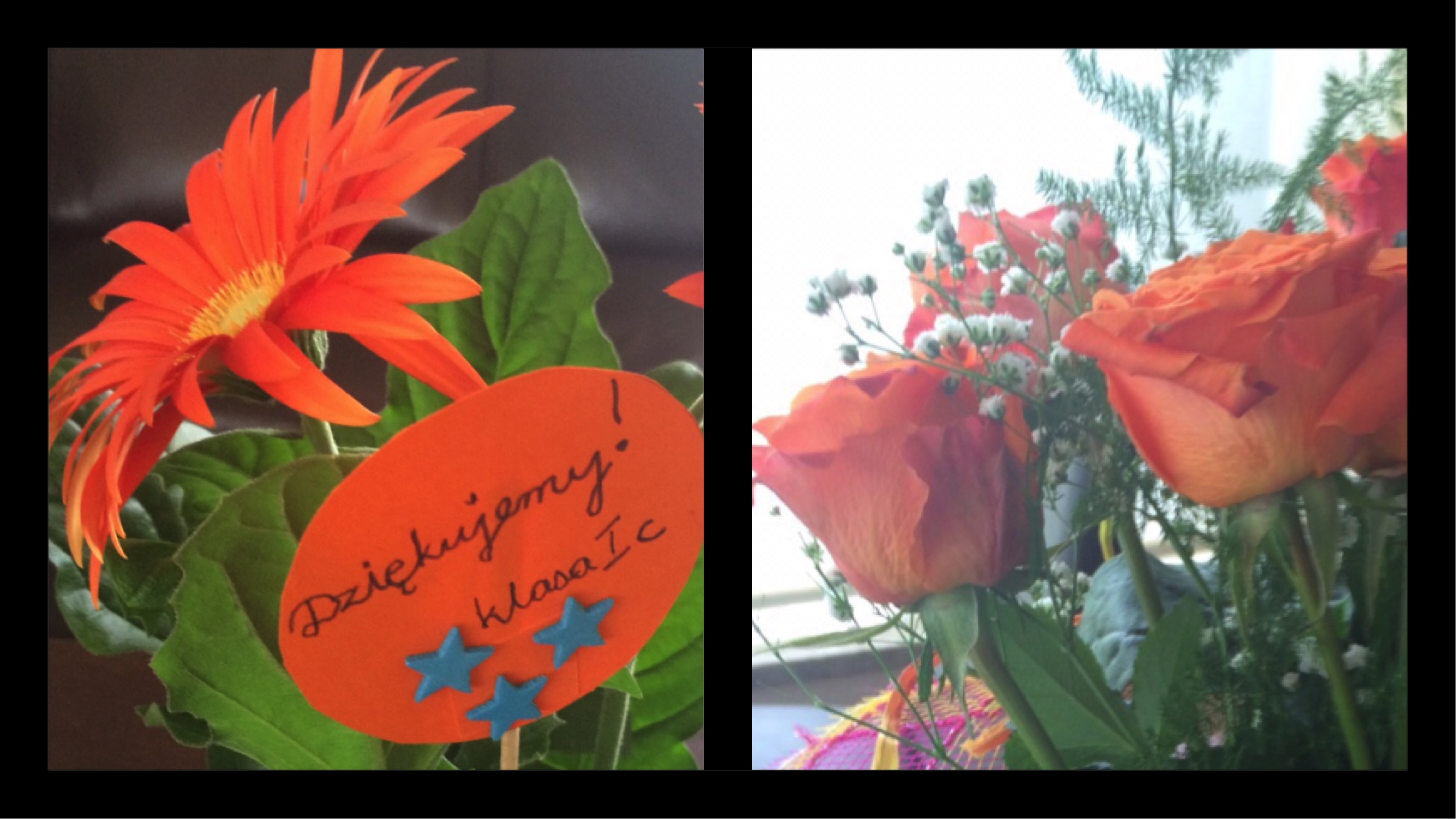 Wielkie dzięki za kwiatki i tablo ze zdjęciami dzieci z 1c (Gee, ile ja bym dała za taki prezent we wrześniu, kiedy mając ponad 60-tkę nowych uczniów ni w ząb nie mogłam imion kilkorga z nich zapamiętać ;-( Wszystko odebrałam, ale z małym opóźnieniem, bo zajmowały mnie dzisiaj sprawy wagi państwowej: