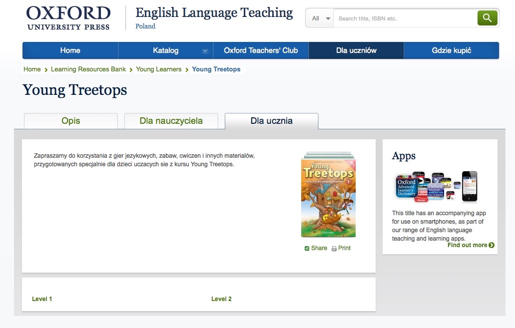 Rozpisywałam się wczoraj o Treetops Funzone i nie sprawdziłam, że Oxford University Press wreszcie uruchomiło stronę dla uczniów korzystających z kursu Young Treetops. Dobrze, że p. Iza i bela_mi były czujne i zwróciły mi na to uwagę w komentarzach. Dziś zatem mały update.
