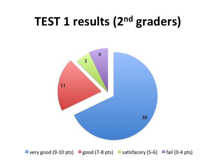 Ale w sumie powinnam być wniebowzięta, bo w trzech uczonych przeze mnie klasach aż 49 uczniów dostało ocenę bardzo dobrą i dobrą, zaś tylko dwoje dostało N-ki (nie opanował, Try again!). Średnia jest zatem bardzo dobra, ale mnie boli każda zła ocena moich uczniów. No i wreszcie, pytania „Co to school proszę pani?” zadawane w czasie testu, choć jednostkowe, nie pozwalają mi popaść w samozachwyt.