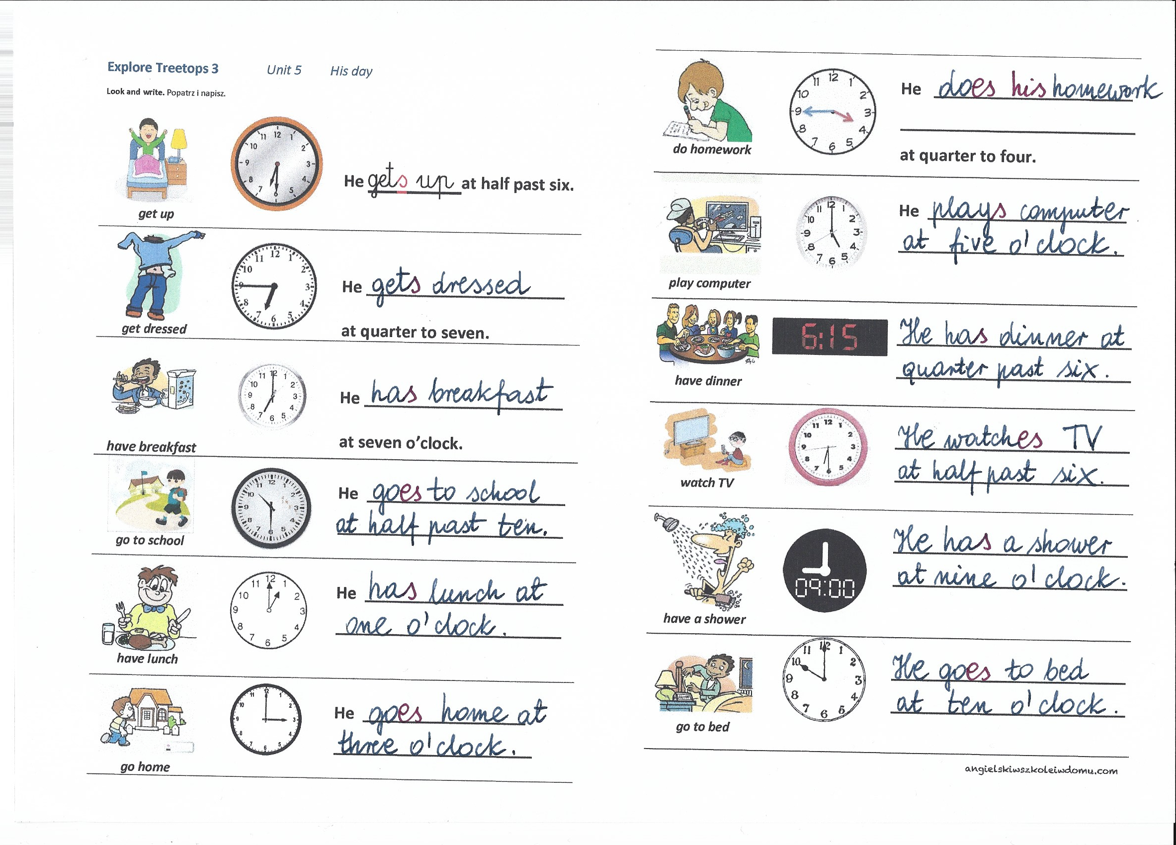 Klasa 3: His/her day (online)
