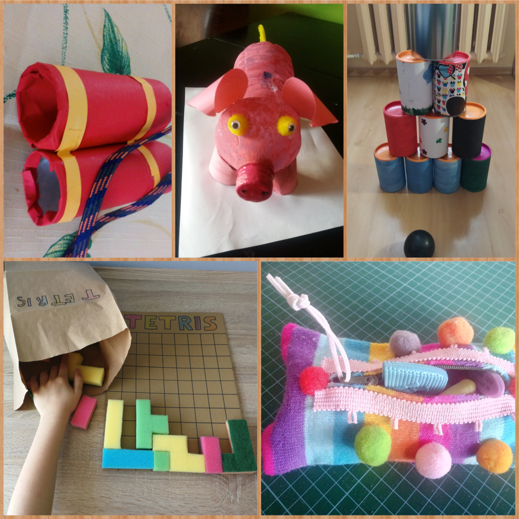 Jeśli nie było cię z nami na lekcji popatrz na zdjęcia i powiedz, z czego dzieci zrobiły swoje zabawki?