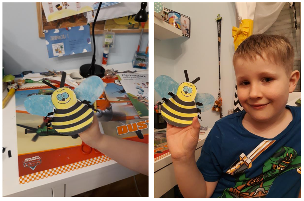 Hej, hej, a co to za nowa przyjaciółka na zdjęciu z Krzysiem? There’s a bee! Wprost z naszej historyjki Yummy honey! So pretty! Bravo!