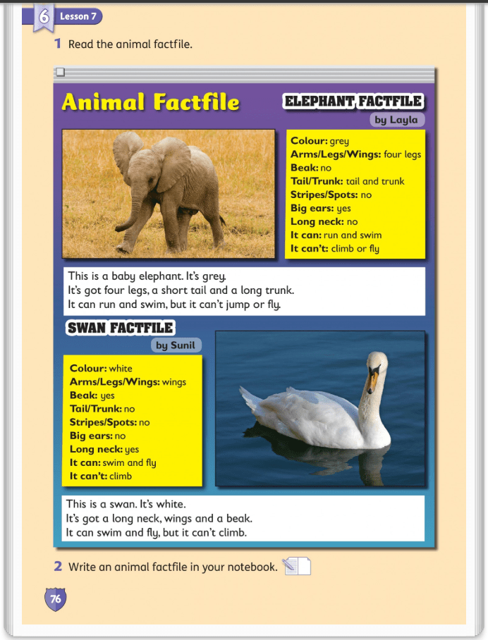 A teraz przeczytaj to, co napisała Layla (Elephant Factfile) i Sunil (Swan Factfile)