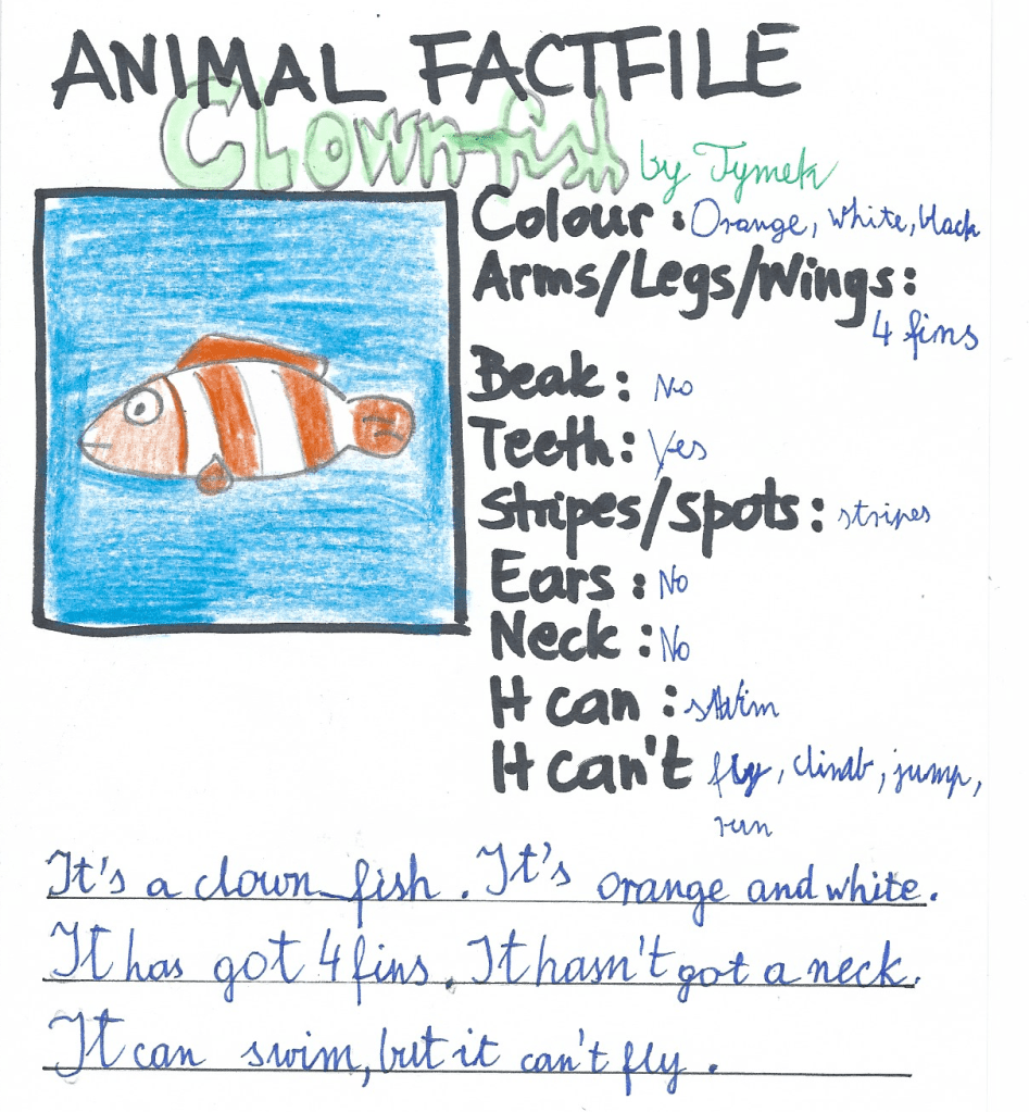 Otwtórz podręcznik na stronie 76 i zobacz jak wyglądają dwie przykładowe karty informacyjne o zwierzętach (animal factfiles).