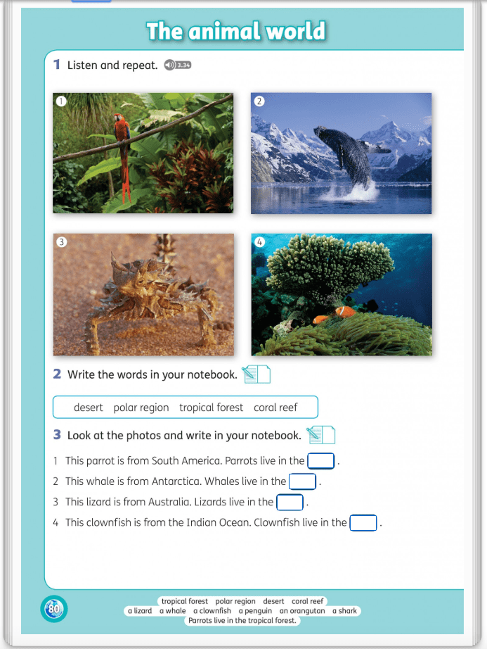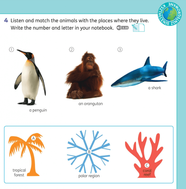 Nasze podręczniki trafiły z powrotem do biblioteki szkolnej, więc kliknij play▶️, patrz na zdjęcia w zadaniu 1, słuchaj i powtarzaj. Listen and repeat.