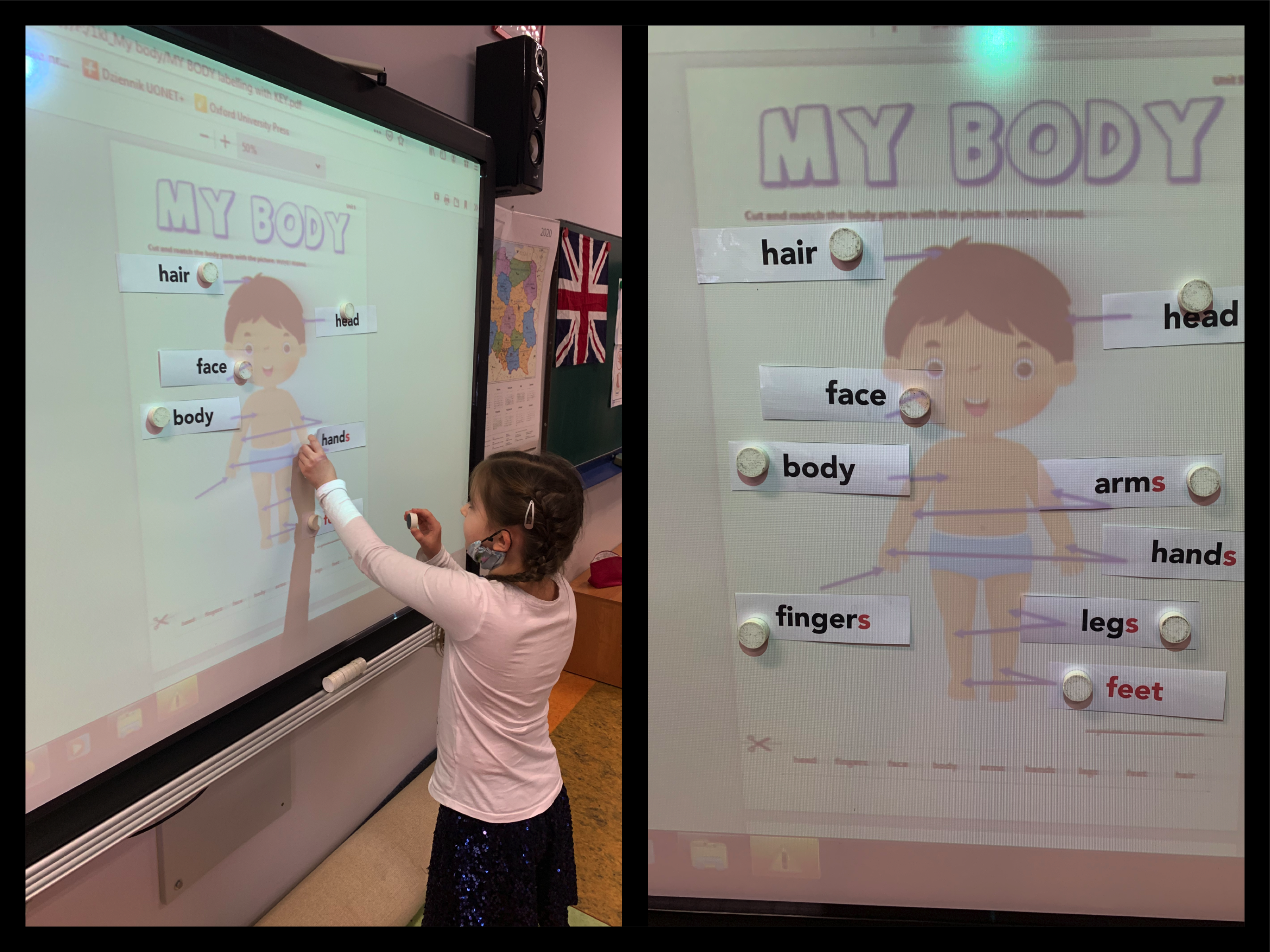 Zobacz jak Hania tworzy klucz do zadania na dopasowanie słów do odpowiednich części ciała na obrazku.