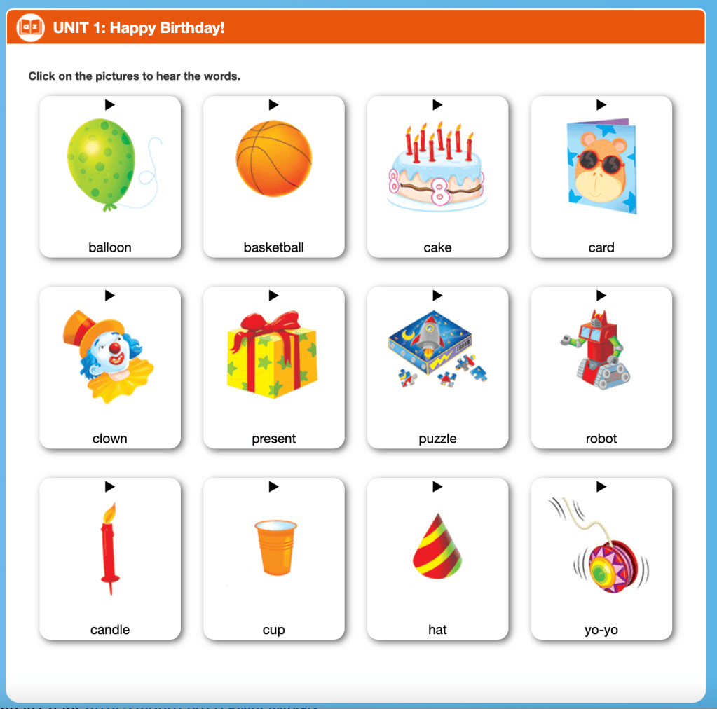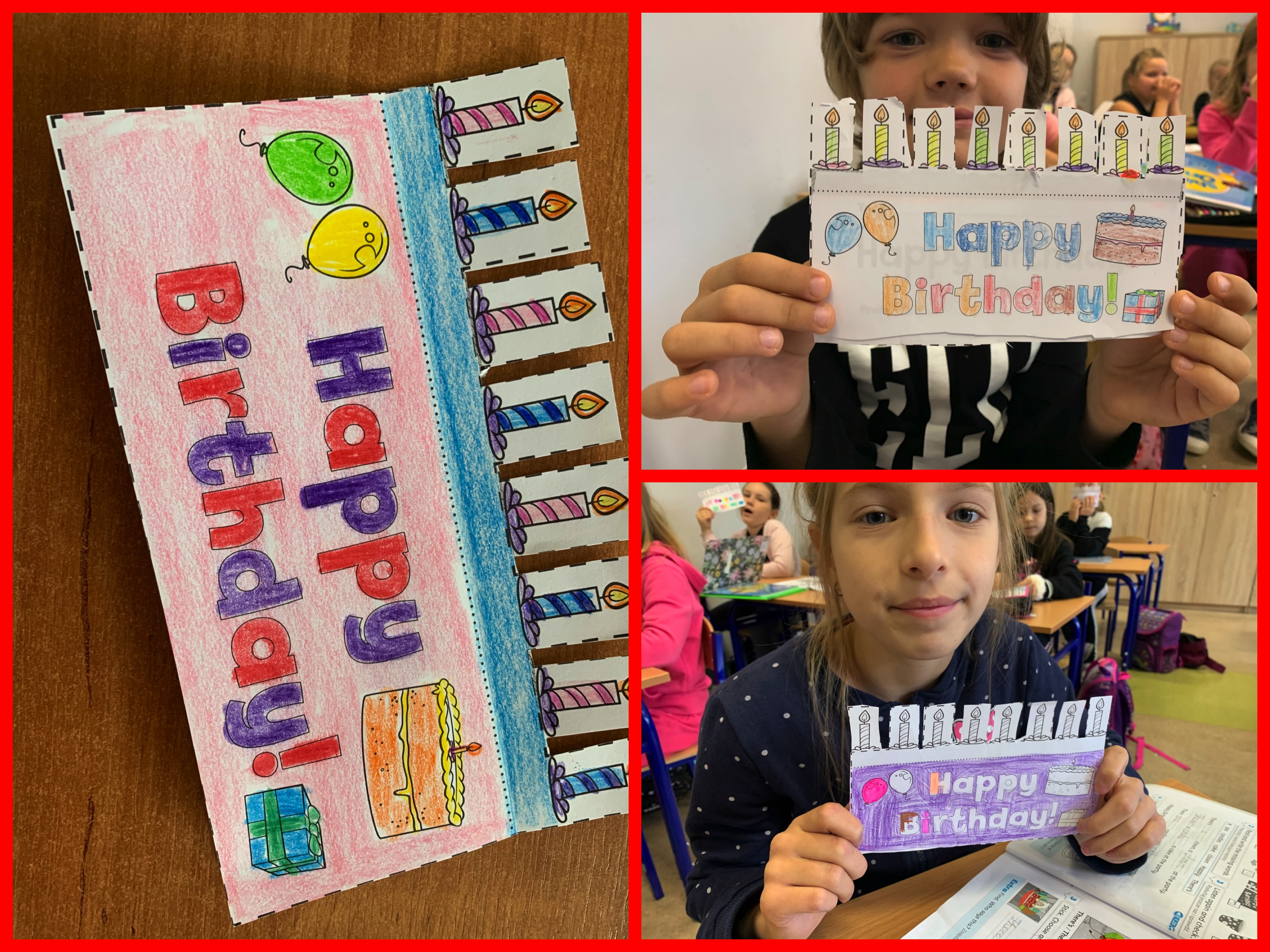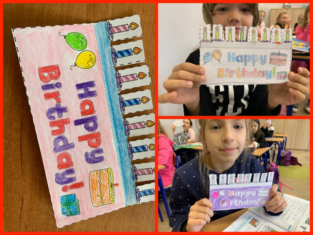 Co zaś do prezentu to powtórzyliśmy nazwy wszyskich zabawek, które nauczyliśmy się w klasie 1 oraz nauczyliśmy czterech nowych yo-yo, robot, puzzle i basketball. Zaśpiewasz teraz ze mną piosenkę It’s my birthday?