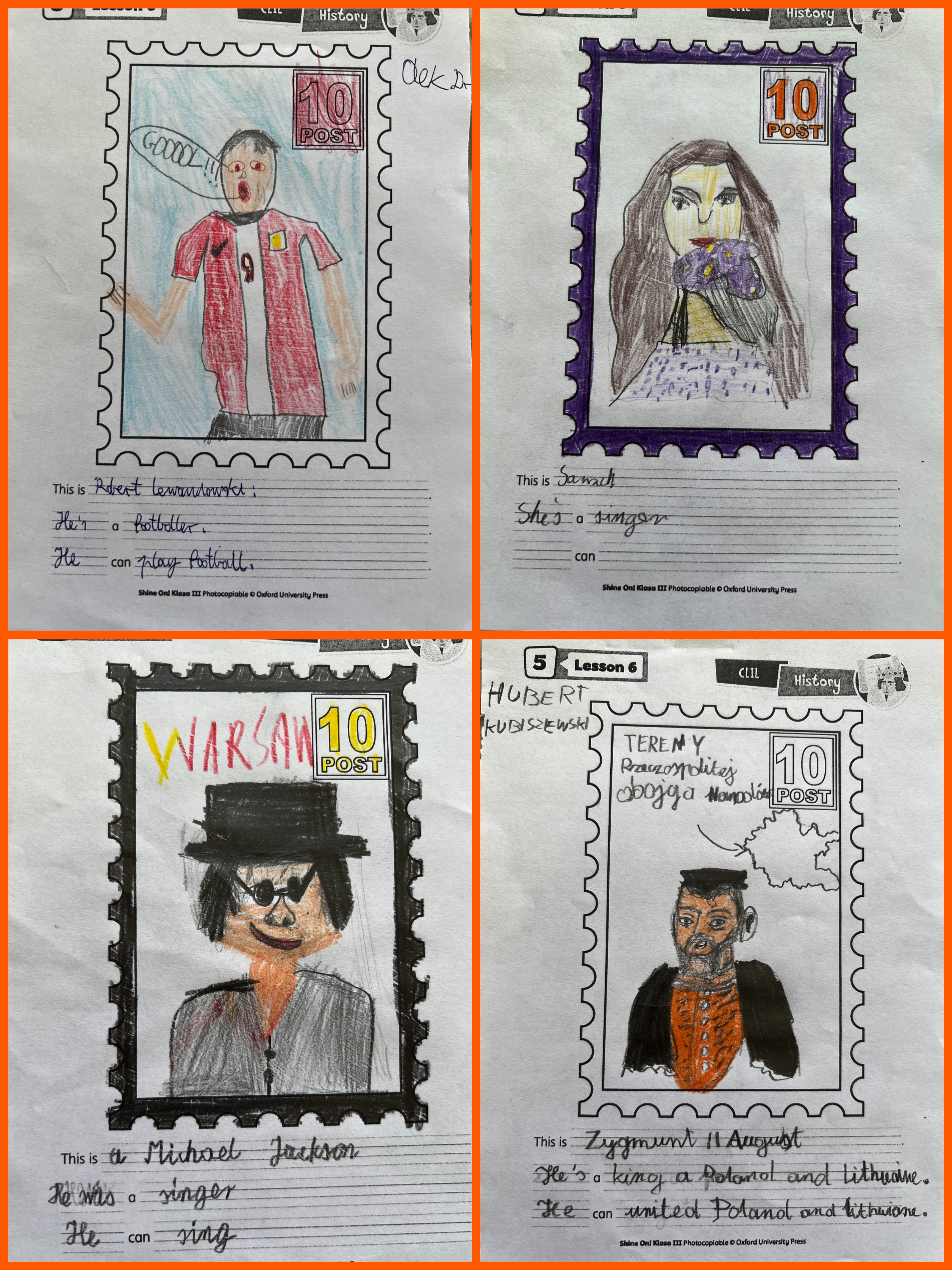 Nie wiem czy bycie gwiazdą albo kimś sławnym to faktycznie taka frajda, ale przynajmniej dzieci na lekcjach angielskiego rysowałyby moje portrety. A kogo ty sławnego, wartego uwiecznienia na znaczku, narysowałeś/aś? Jak go/ją opisałeś? Co potrafi twój idol/idolka?