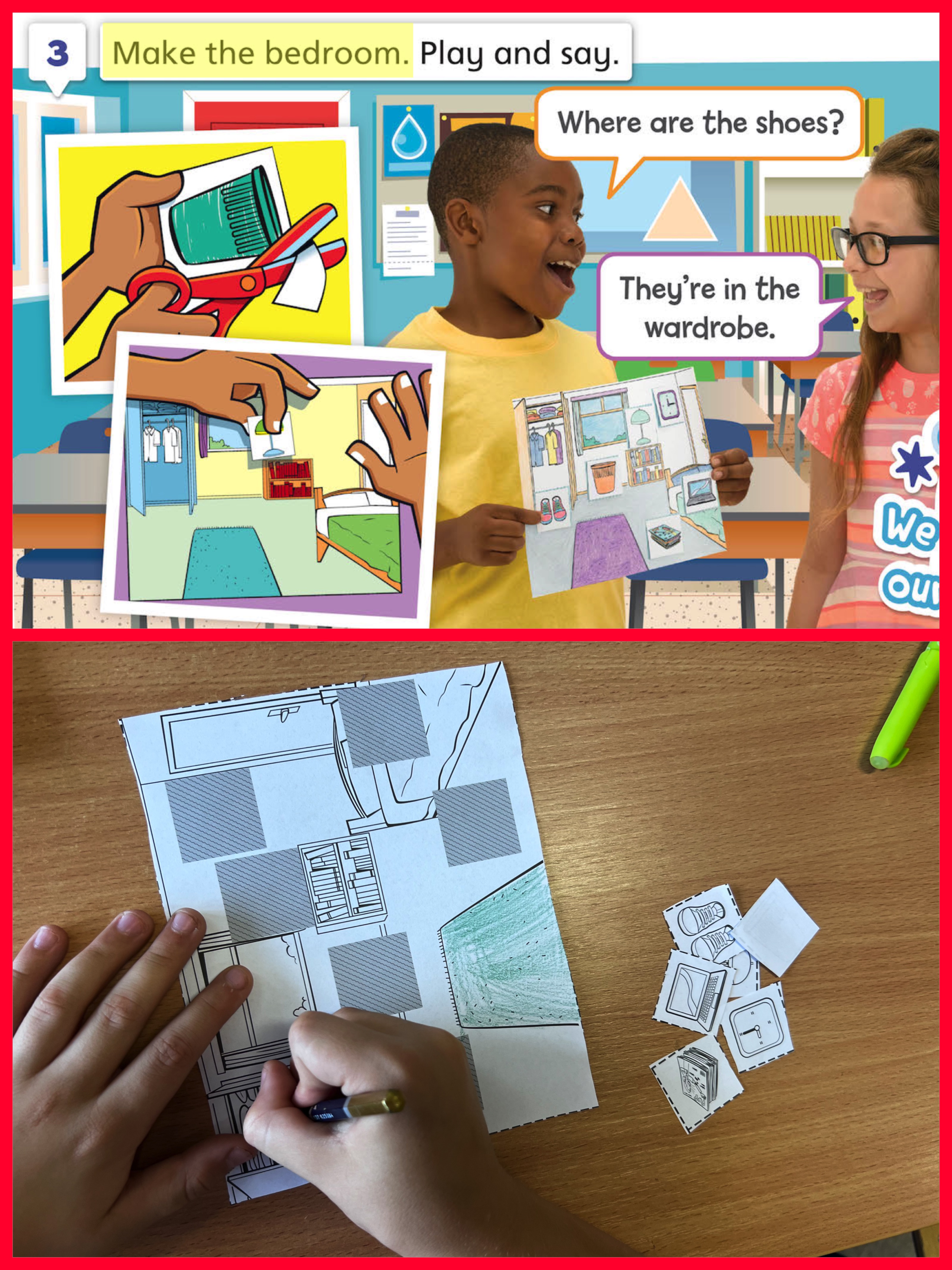 Podobne pytania zadam ci w środę. Pamiętaj by wykonać (zadanie domowe-homework) kolaż przedstawiający (mniej więcej) twój pokój (zadanie 5 str. 13; wycinanka jest w twojej teczce, resztę ważnych rzeczy dorysuj).