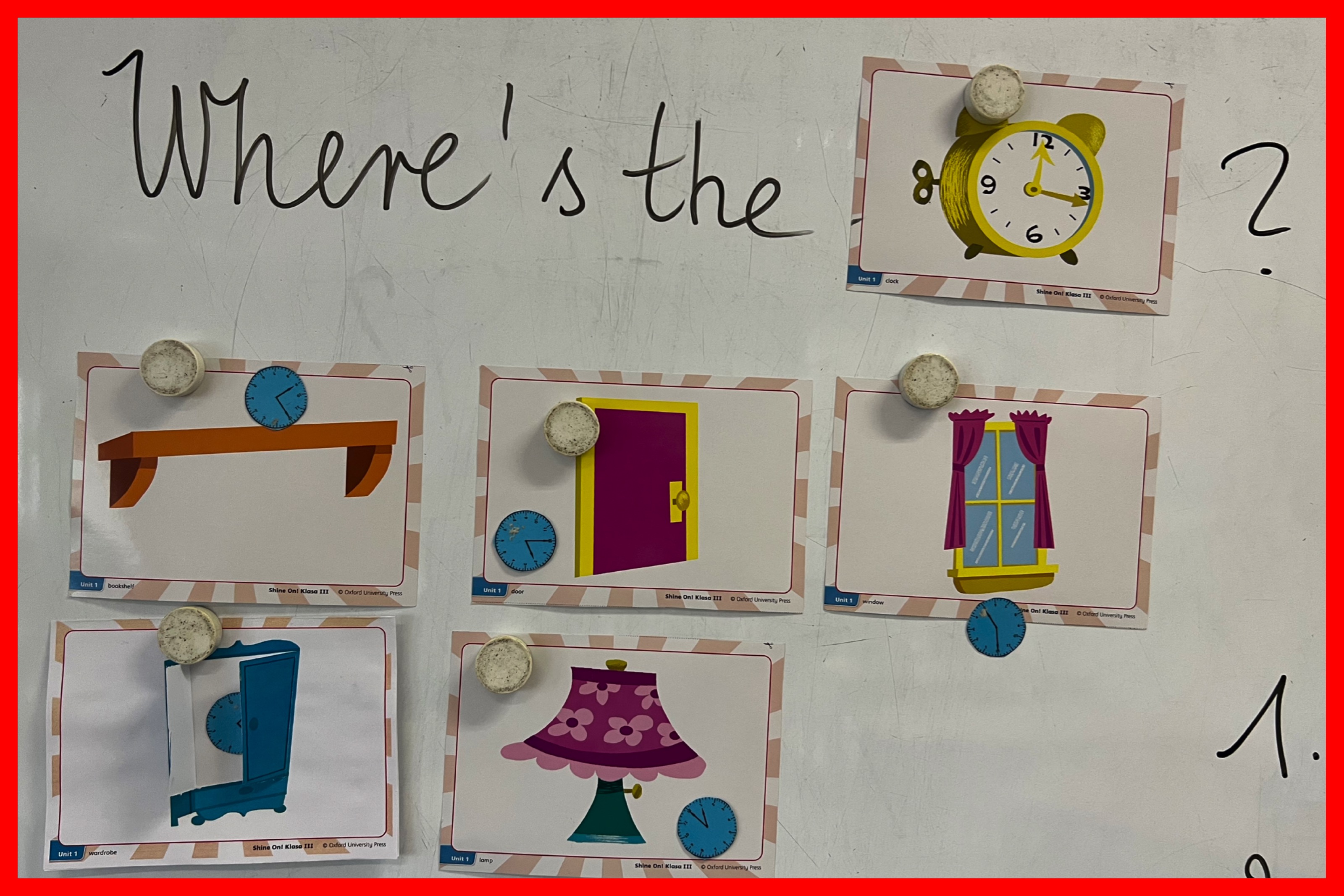 A teraz spójrz na zdjęcie naszej klasowej tablicy i odpowiedz Where’s the clock?