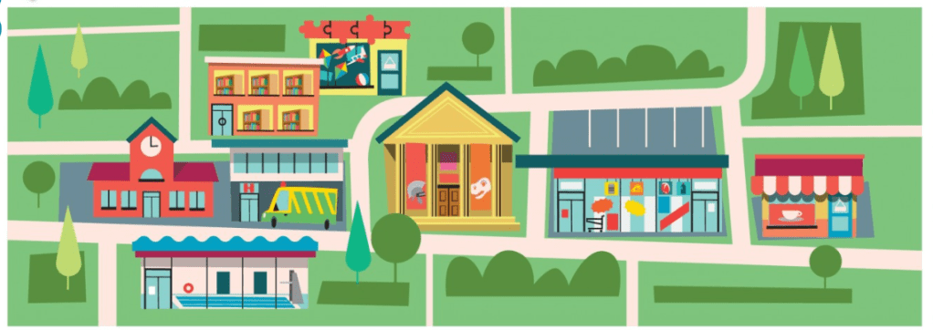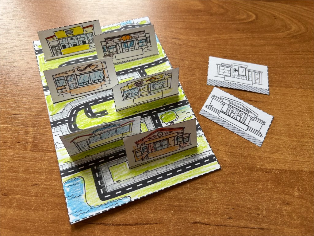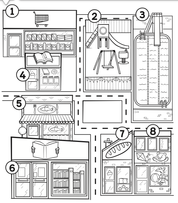 Przez cały kwiecień uczyliśmy się jak opisywać nasze (lub inne) miasto). Podstawowe słówka które poznaliśmy znajdziesz w słowniczku obrazkowym w zeszycie ćwiczeń (str. 66). Jeśli nie jesteś pewny/a jak wymawia się niektóre wyrazy to poćwicz na stronie kursu (TU). Uważaj szczególnie na słowo restaurant, museum i library.
