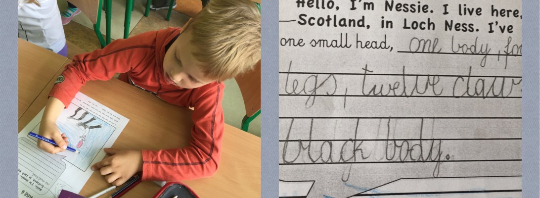 Dzisiejsze zadanie domowe (dla chętnych) to wykonać stronę ze skrawków (zdjęć, rysunków, naklejek) o naszej szkole. Zadanie tylko dla chętnych. Obok przykłady jak to zrobił Adam (w książce) i jeden z uczniów (o SP67), jak widać wielbiciel filmu o Minionkach 🙂